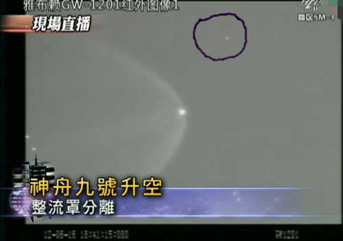 據報載大陸的神舟九號太空船,在北京時間16日下午6點37分順利發射升空,而拍攝過程中、突然畫面捕捉到1-2秒有不明光體從太空船右方快速經過。這段畫面經媒體競相報導後令網友一片譁然,認為是不是拍到UFO了。探索者 發表在 痞客邦 留言(6) 人氣(917)